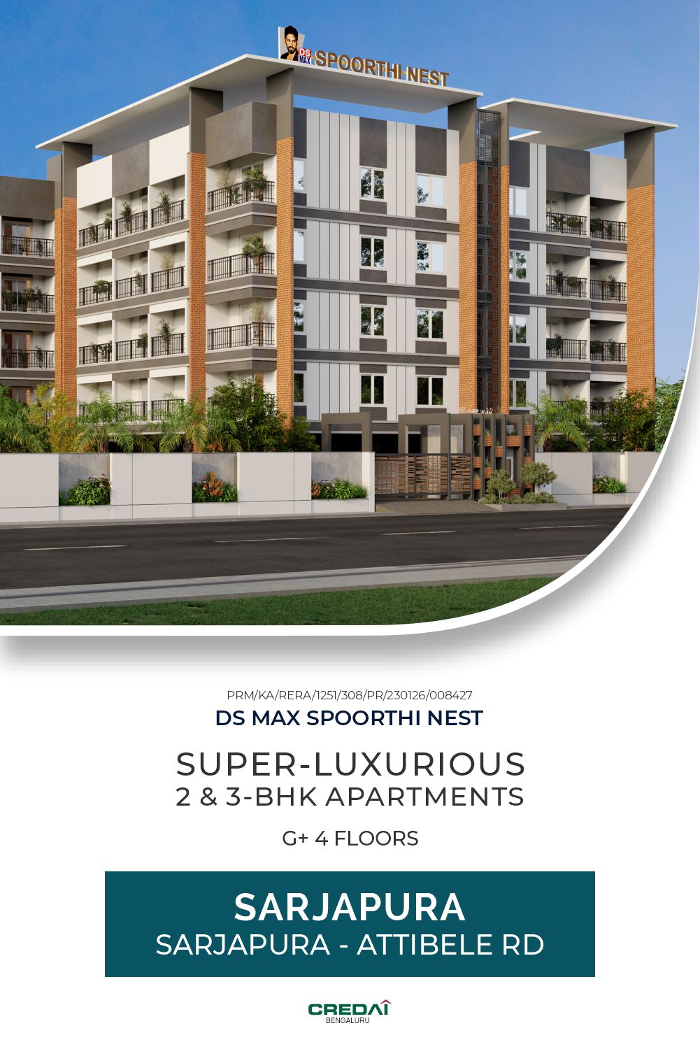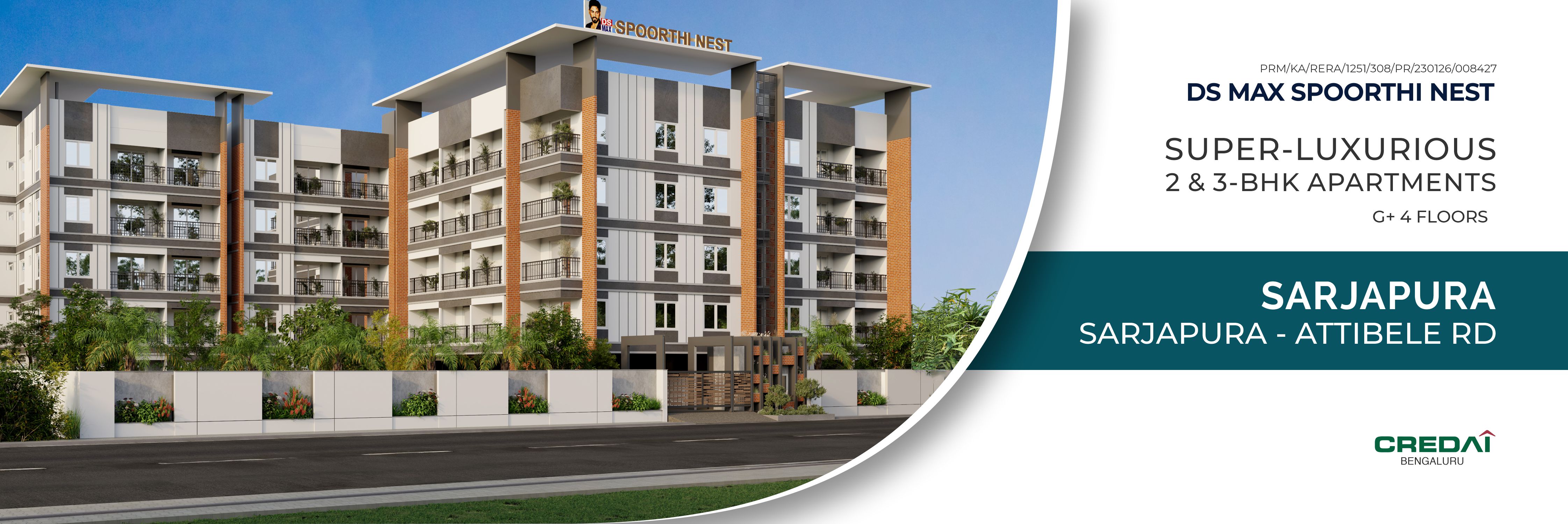 DS MAX Spoorthi Nest offers thoughtfully designed 2 & 3 BHK luxury apartments on Sarjapura-Attibele Road. These homes provide a refreshing escape from city traffic, allowing you to breathe fresh air. Enjoy excellent connectivity to major IT corridors, ensuring a balanced work-life and easy commutes. Beyond your comfortable residence, a world of possibilities awaits within our well-appointed clubhouse and inviting green spaces, designed for relaxation, community, and a lifestyle where your dreams can truly take wings.